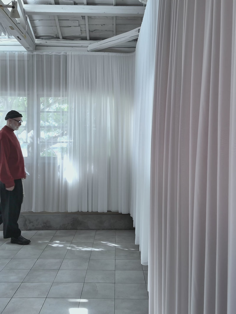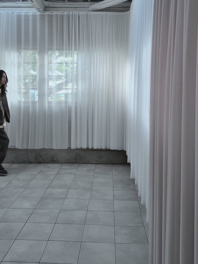 Wool Blend Tweed Back-Open Layered Crew Neck Vest <#greige>